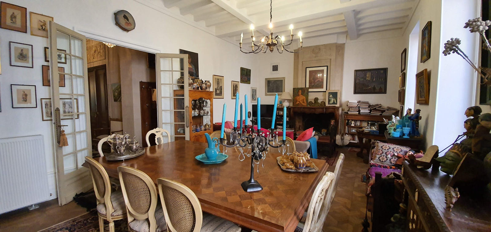 Poutres apparentes, hauteurs sous plafonds, peintures d’époques viennent rappeler son passé d’appartement de réception.